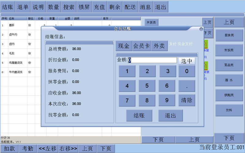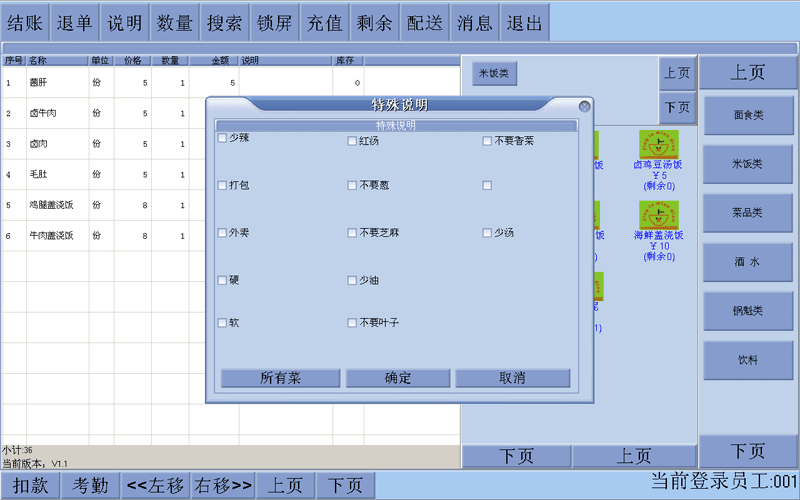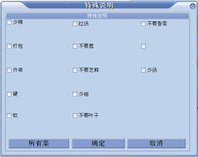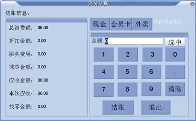 前臺接待開單、點菜、加菜、退菜、附加口味做法、并單、移臺、房臺預訂、菜品預訂、外賣、結單等日常操作;臨時菜品(菜譜未設置但本店還能做的菜品)管理;支持現金、免單、簽單、會員卡、支票、信用卡等多種付款方式;會員級別不同可以享受不同級別的優惠;預訂顯示可以有效防止房臺沖突;其他簡單的查詢和統計。