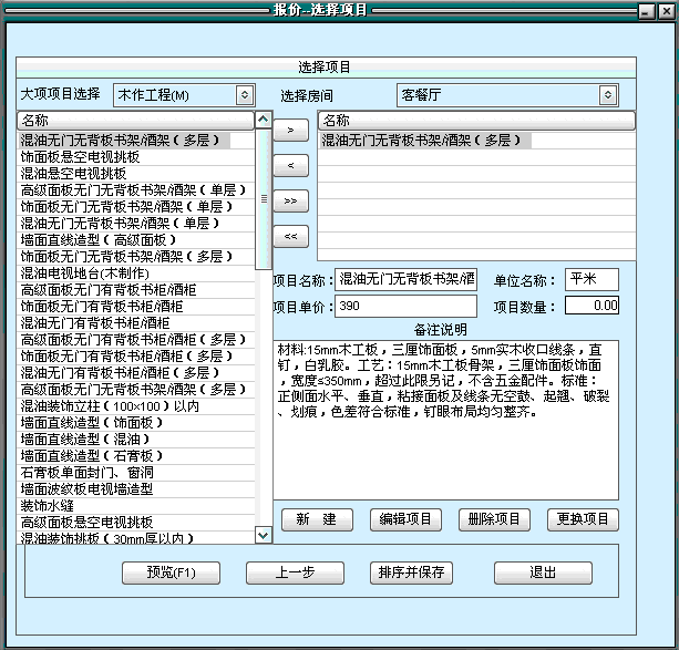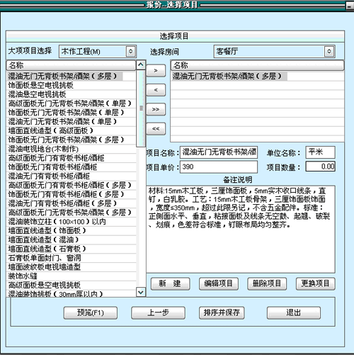 新建報價—選擇項目 進入后臺演示>> 看大圖