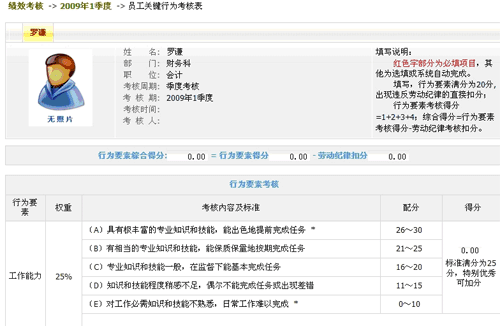 部門員工考核 進入后臺演示>> 看大圖